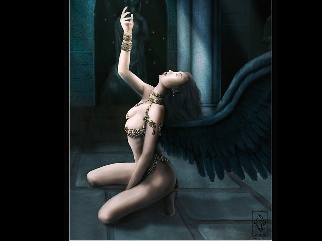 Мольба ангела, девушка с черными крыльями.
