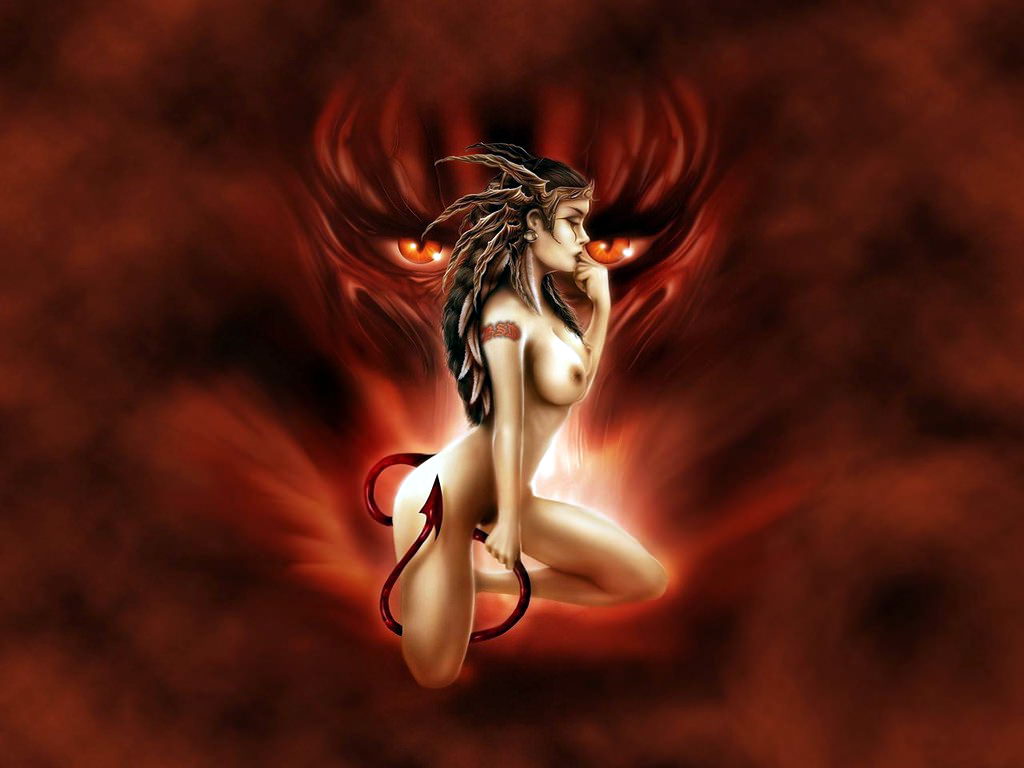 Приспешница дьявола, голая демонесса, обнаженная сексуальная девушка демон с хвостом под надзором дьявола, пламя, красные глаза.Приспешница, дьявола, голая, демонесса, обнаженная, сексуальная, девушка, демон, с, хвостом, под, надзором, дьявола, пламя, красные, глаза |