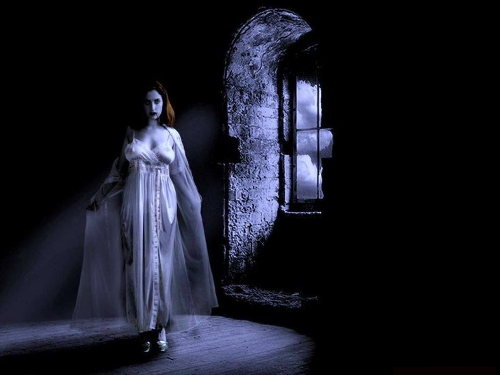 Вампирша в темном замке, вампиресса в белом платье, кровь на губах, окно, девушка вампир.
