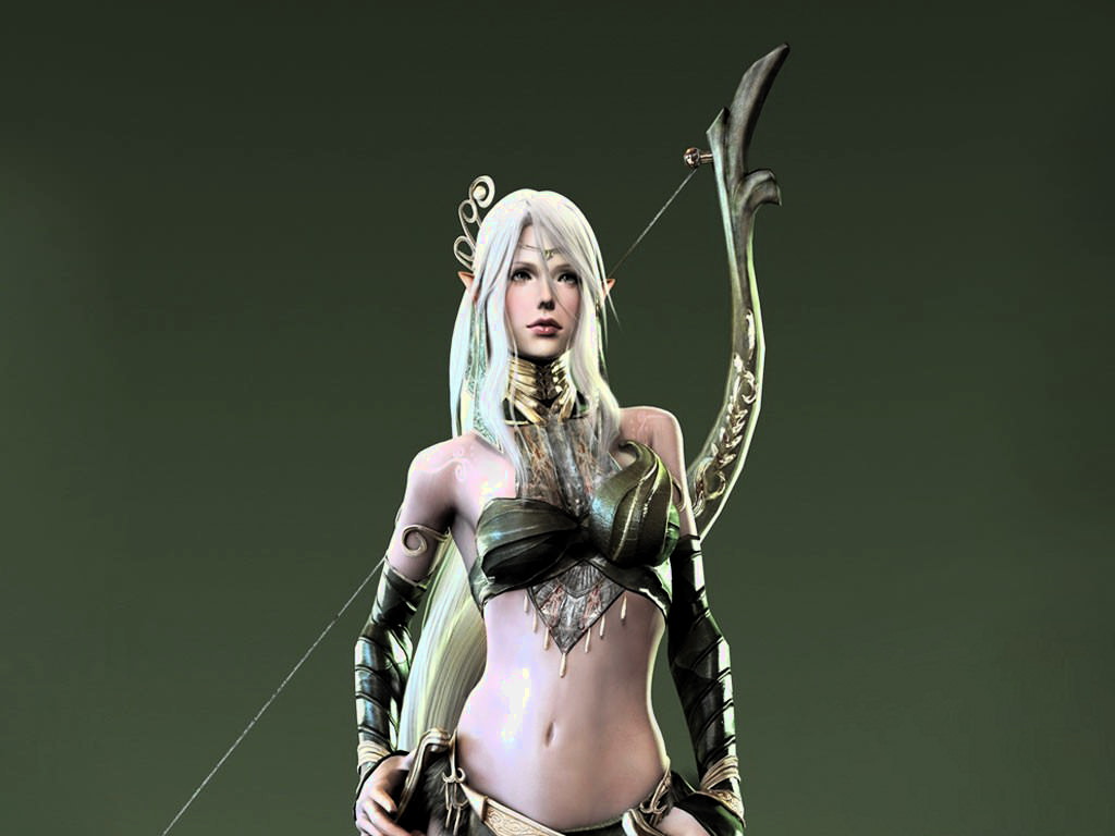 Прекрасная эльфийка с длинным луком, эльфийская лучница.