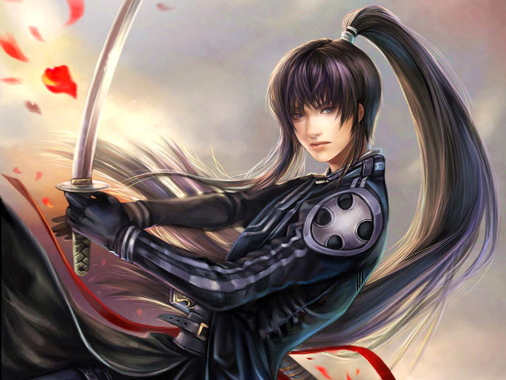 Длинноволосая девушка с катаной.