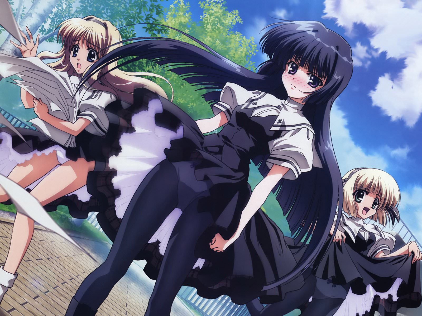Ветер под юбками, аниме девушка в юбках.