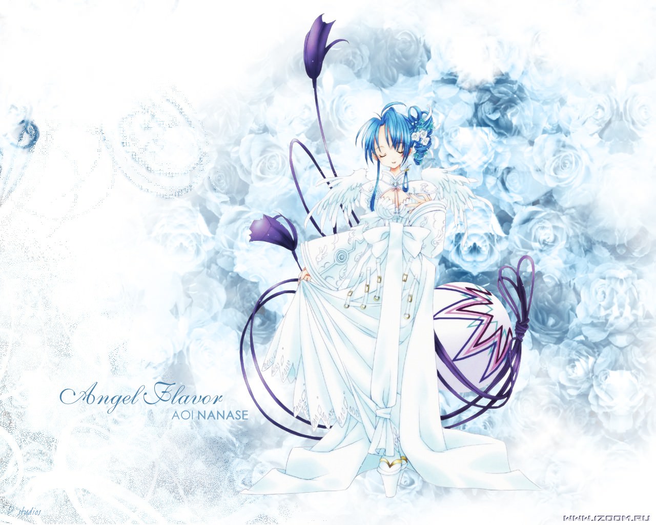 Цветок ангела, аниме девушка в голубом платье в красивых цветах.