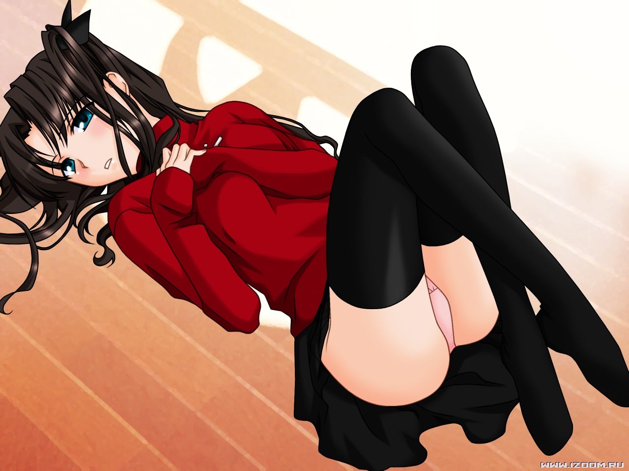 Стеснительная красотка, девушка легла на пол и подняла ножки в чулках, в розовых трусиках под юбкой, в красной кофте.