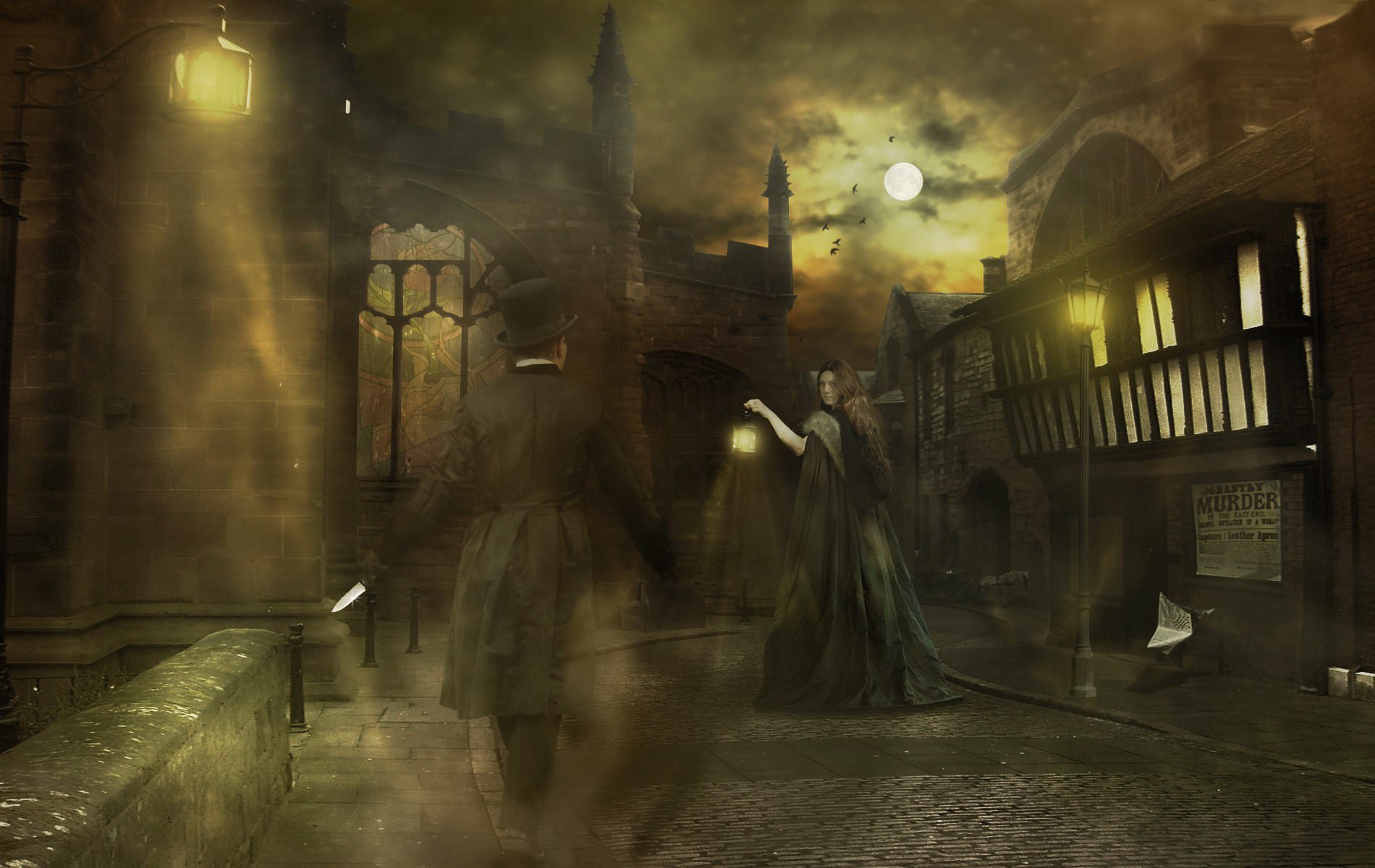 Однажды в Лондоне, девушка и убийца, нож, фонарь, луна, город, разыскивается убийца.