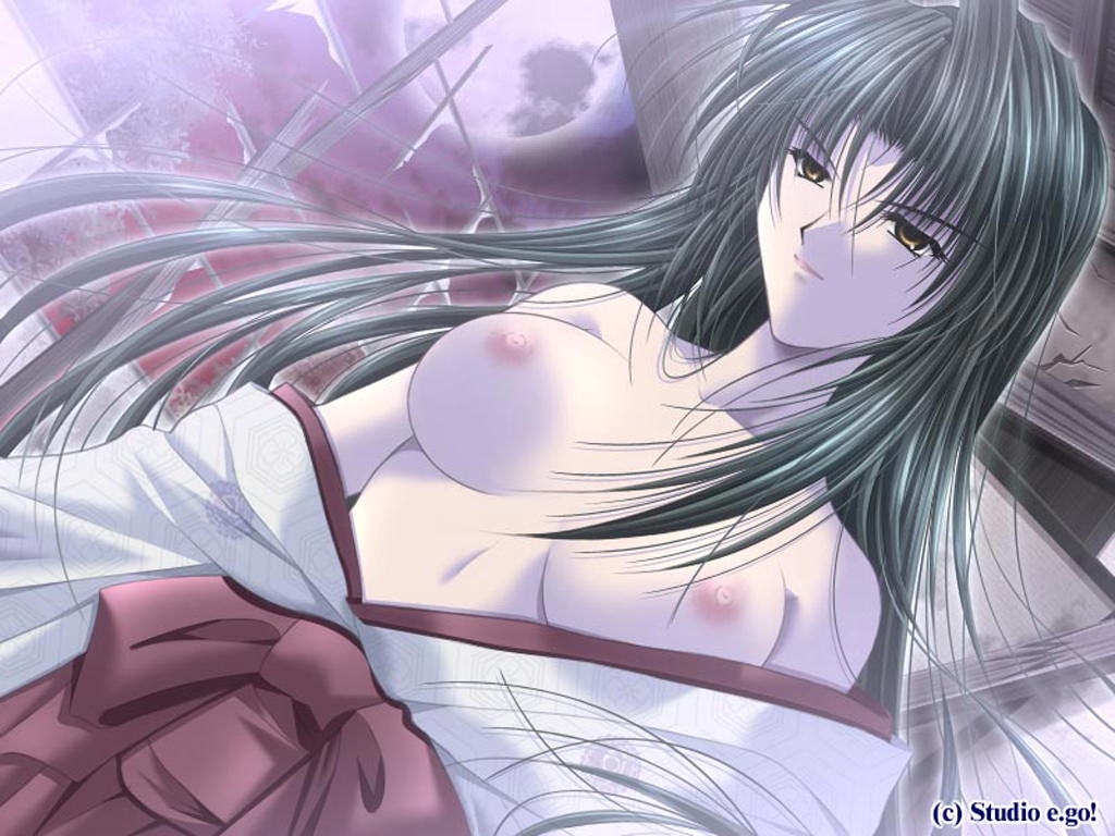 Слетело кимоно хентай, девушка с обнаженной грудью, красивые сиськи.