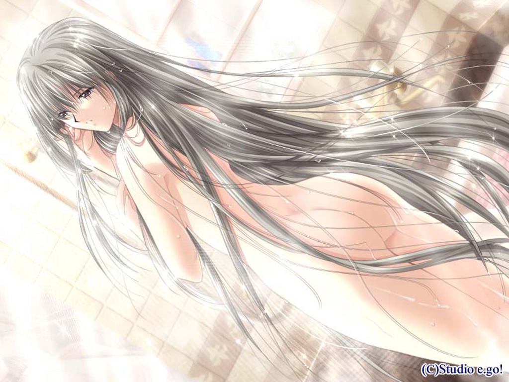 Обнаженная длинноволосая девушка в душе.