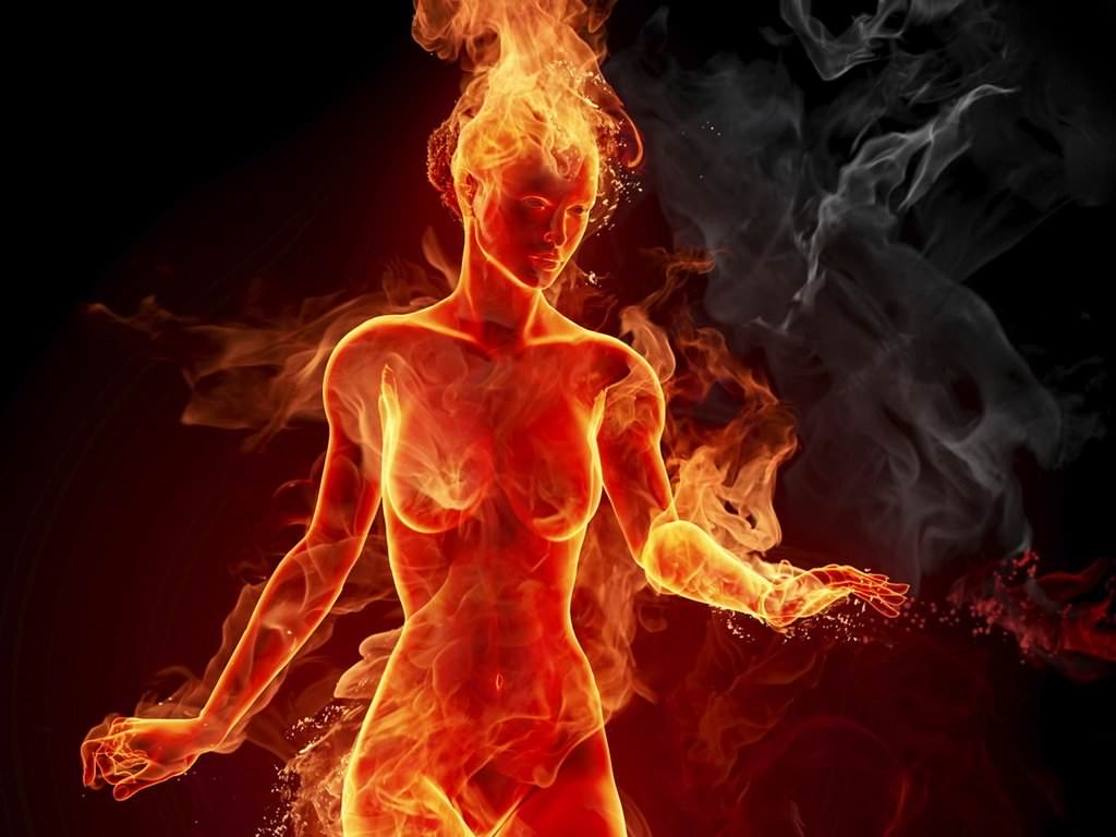 Огненный элементал, огненная девушка, девушка пламя, огонь, дым.