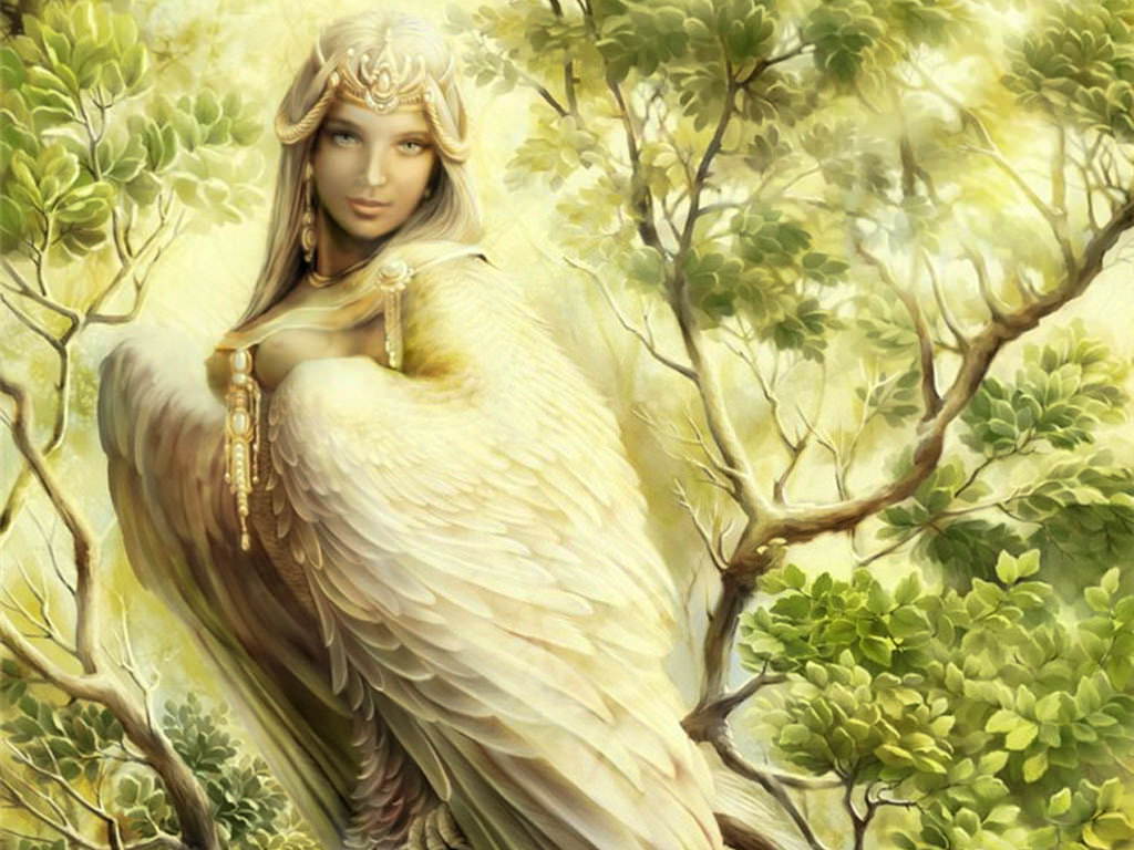 Девушка-сова в лесу, девушка филин, с крыльями, листья.