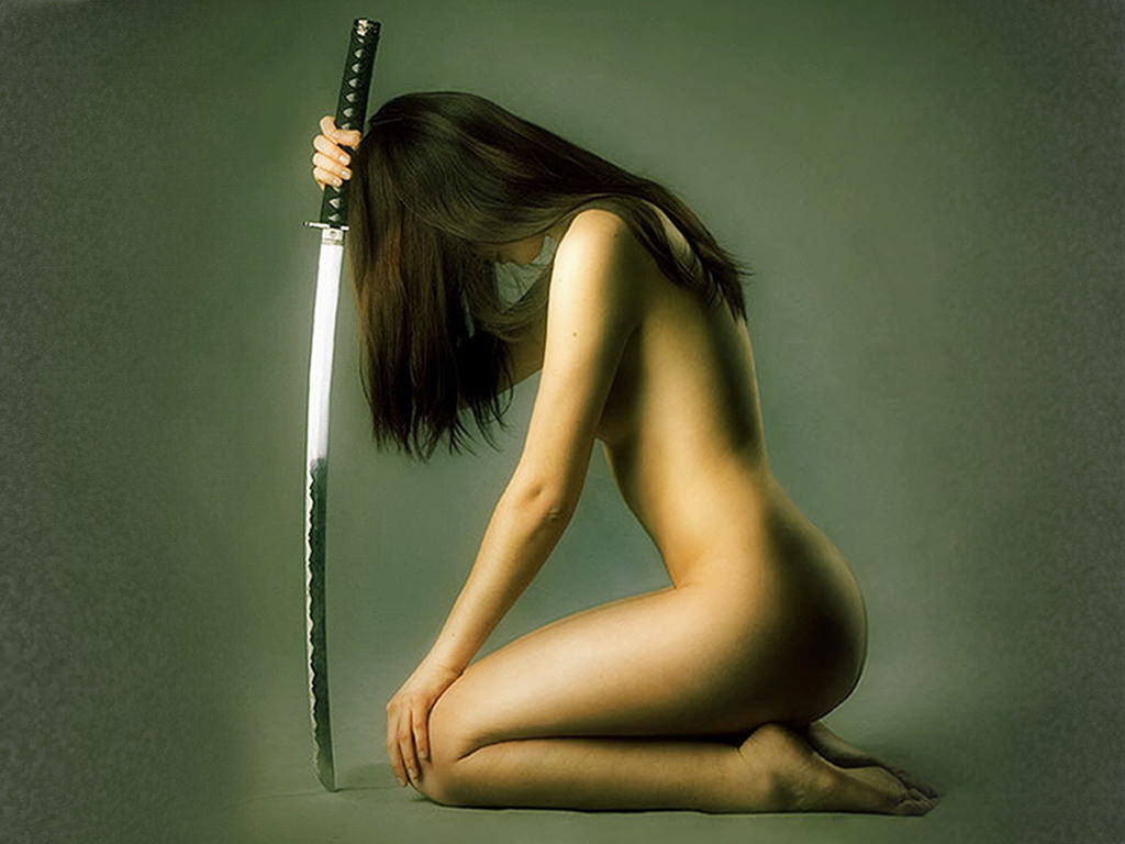 Обнаженная девушка с катаной.