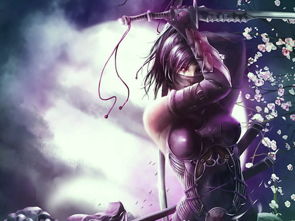 Девушка-ниндзя, фэнтези девушки с клинком, ассассинка.