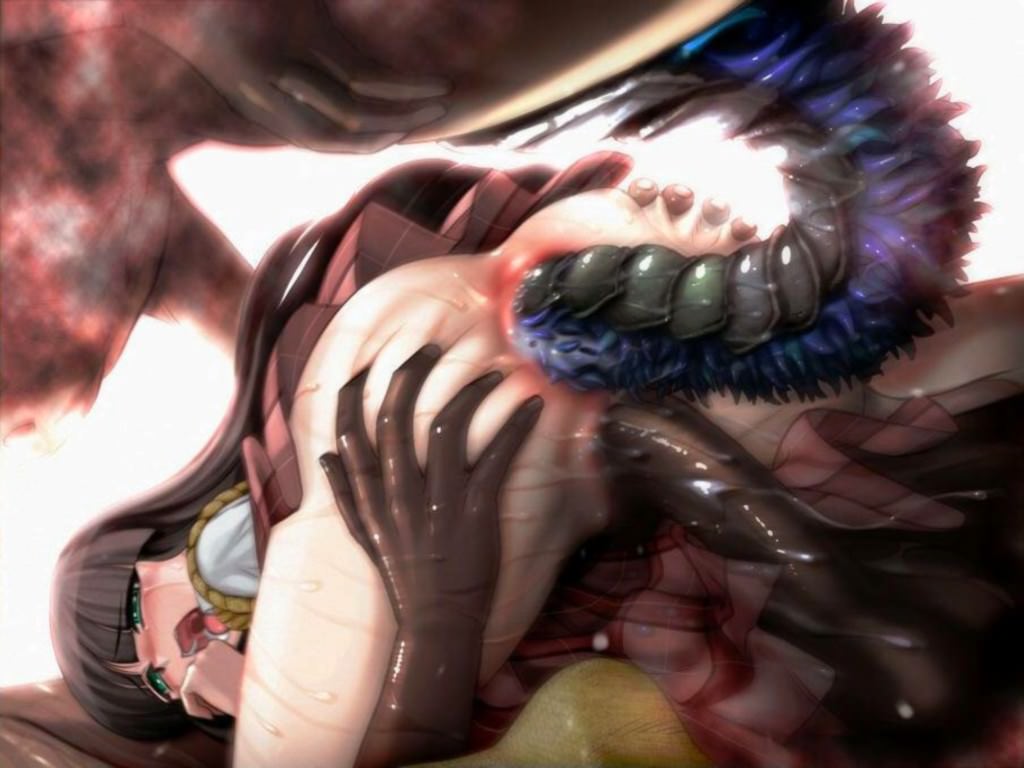 Огромные черви насилуют девушку, залезли в обе дырки, щупальца трахают девушку в обе дырочки, инопланетное существо насилует девушку в попку и в щелку.
