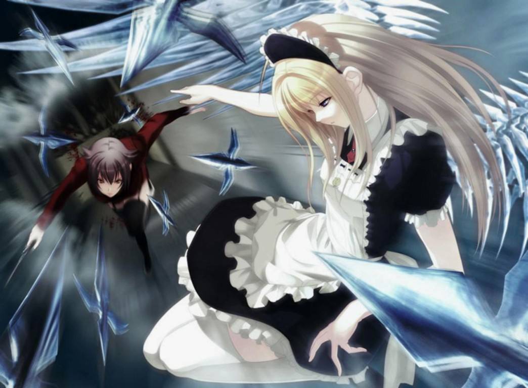Служанка с темным прошлым, необычная служанка уворачивается от сюрикенов наемных убийц, металлические метательные звездочки выпущенные убийцами в домработницу, уклонение.