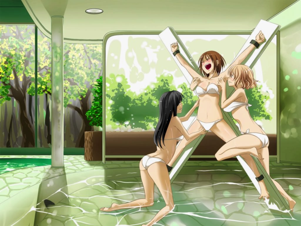 Сексуально замучили подружку, девушки в бикини на лесной веранде особняка, две девушки в трусиках привязали подружку к досках и ласкают ее в интимных местах.