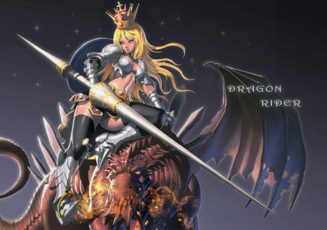 Наездница на драконах, Dragon Rider, девушка с рыцарским копьем, в доспехах и шикарными светлыми длинными волосами, с короной на голове, управляет драконом, сидя на нем.