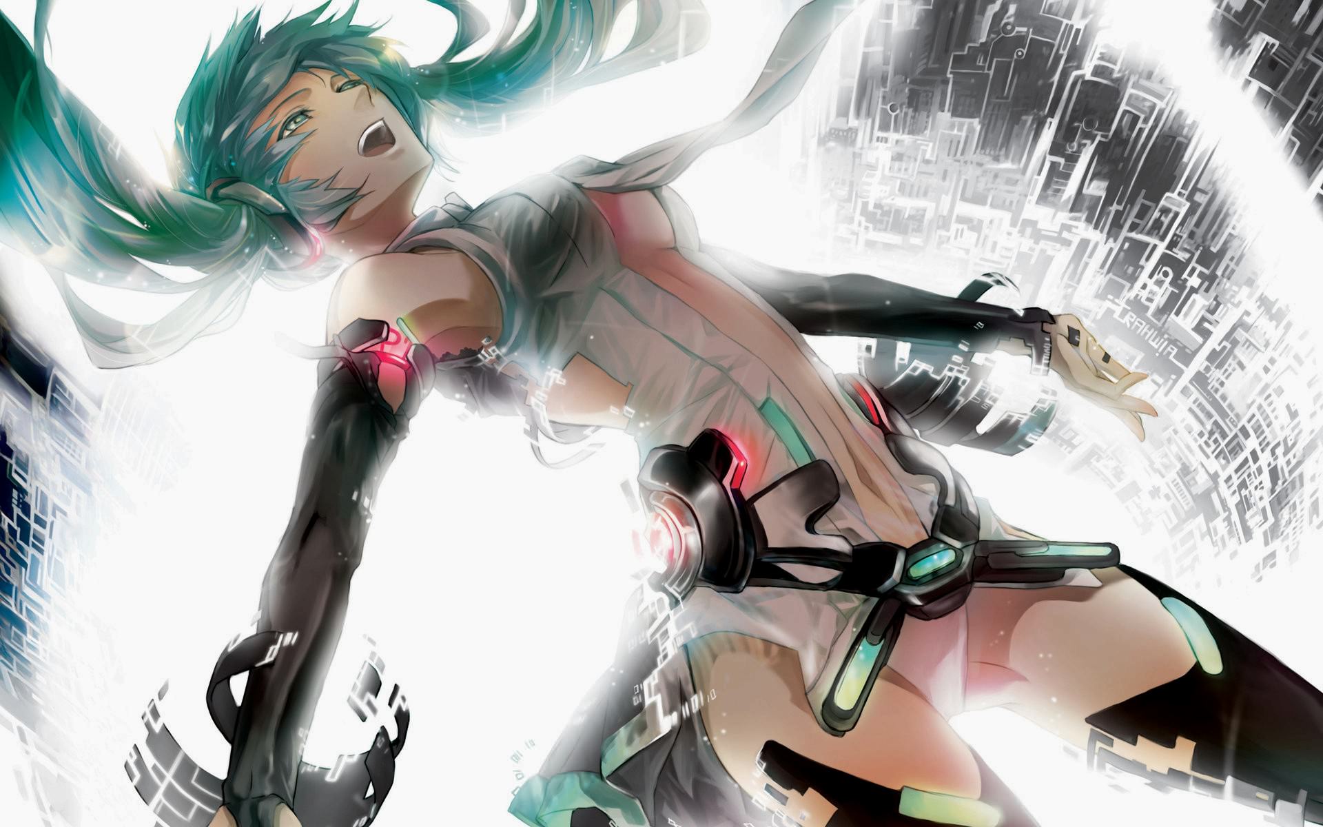 Девушка киборг в потоке света.