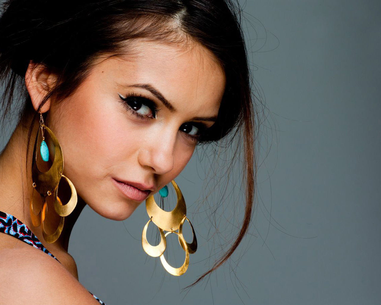 Обаятельная Нина Добрев с большими золотыми сережками, милые глазки, соблазнительный взгляд, justgirls (106).