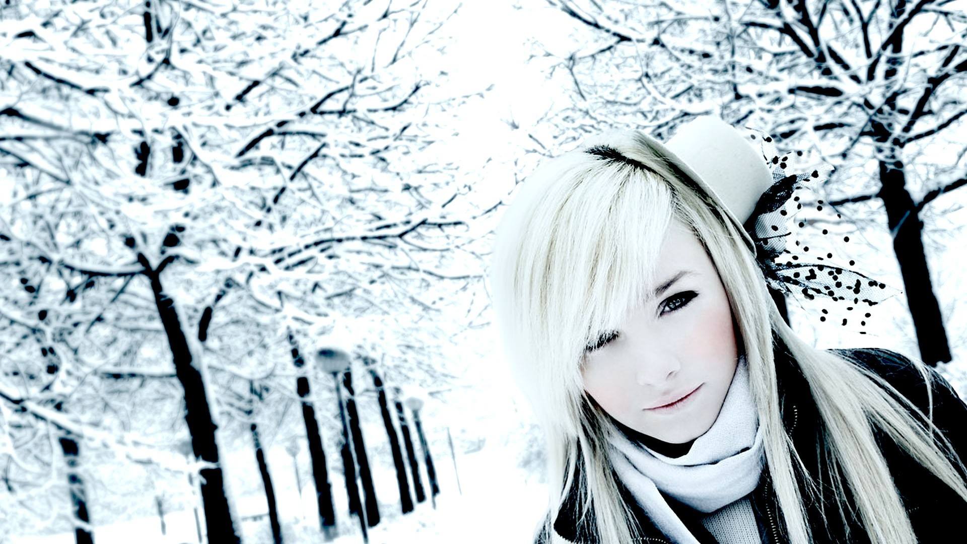Девушка в зимнем парке, белые волосы, белая шляпка, снежные деревья, розовые щечки, justgirls (121).