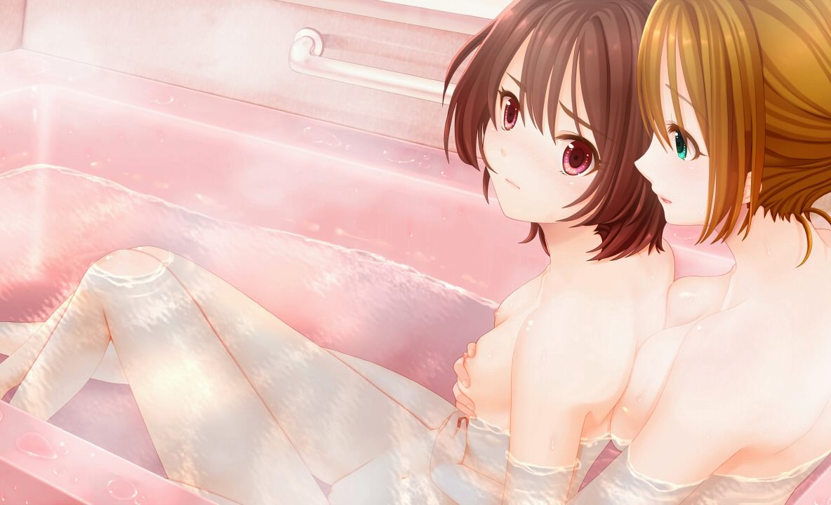 Девушки лежат в ванной в обнимку, голые девушки купаются вместе в ванной.