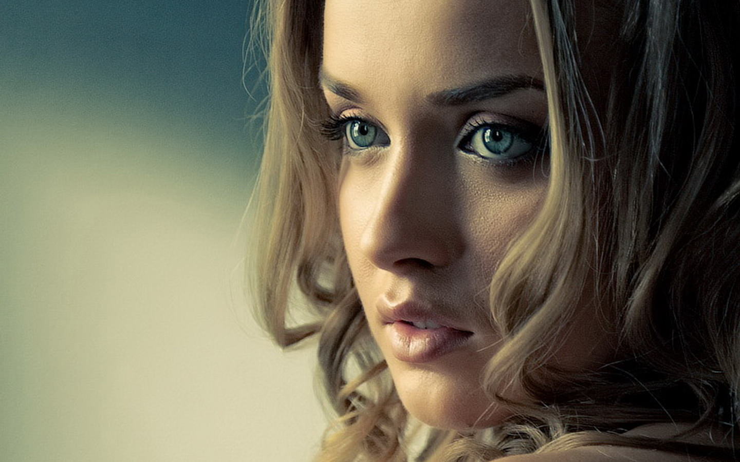 Лицо молоденькой сексуальной девушки, голубые глаза, кудрявые волосы, милое лицо.