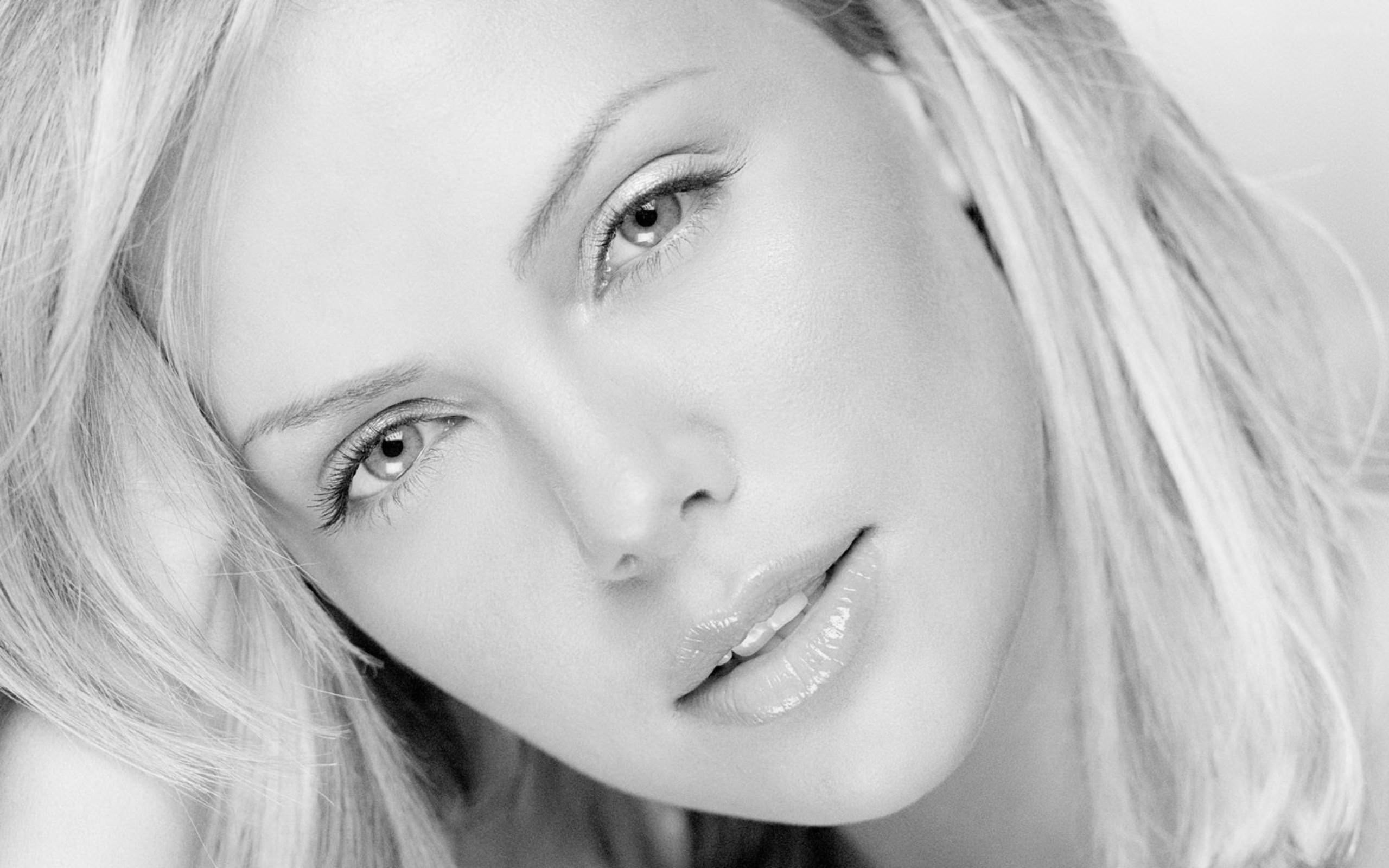 Личико Шарлиз Терон в черно-белом стиле, красивая актриса, милые сладкие губы, красивые глаза.
