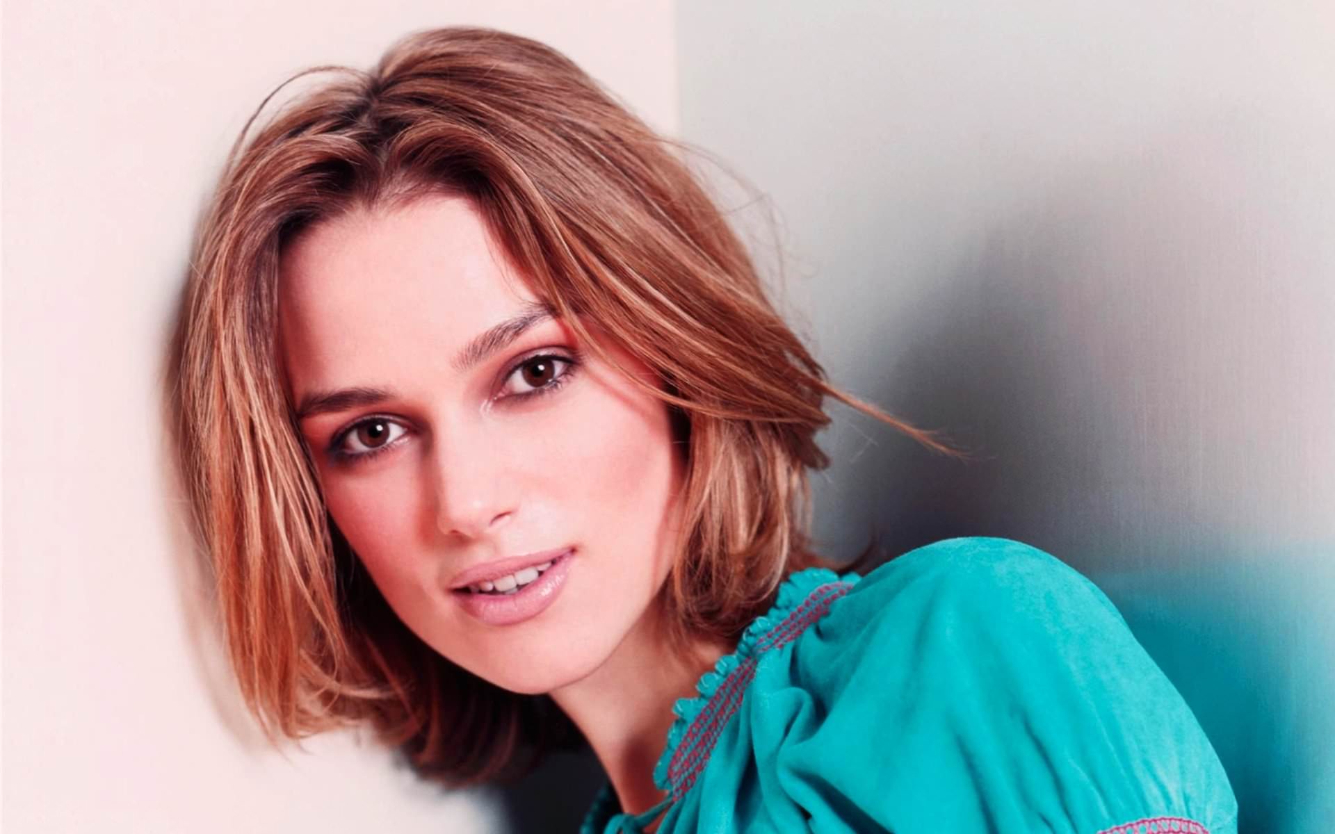 Кира Найтли в голубом платьице, Keira Christina Knightley, красивое личико Найтли, карие глаза.