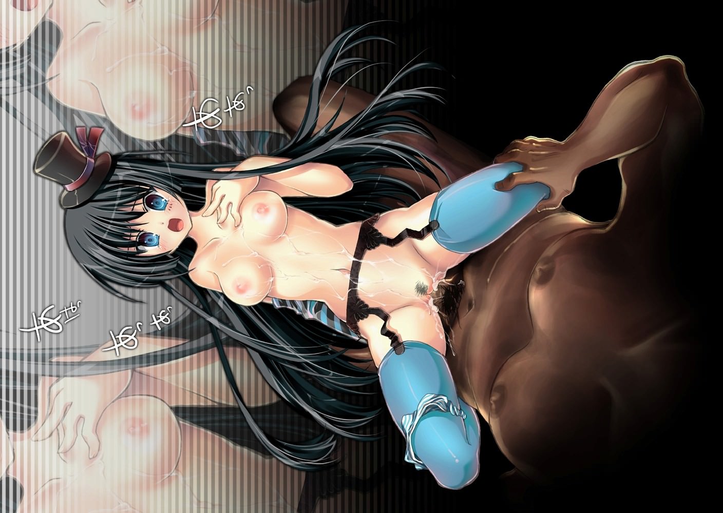 Секс с девушкой в шляпке, девушка в голубых чулках прыгает на члене здоровяка, миниатюрная сексуальная девушка с классными голыми сиськами скачет на члене, у нее длинные черные волосы.