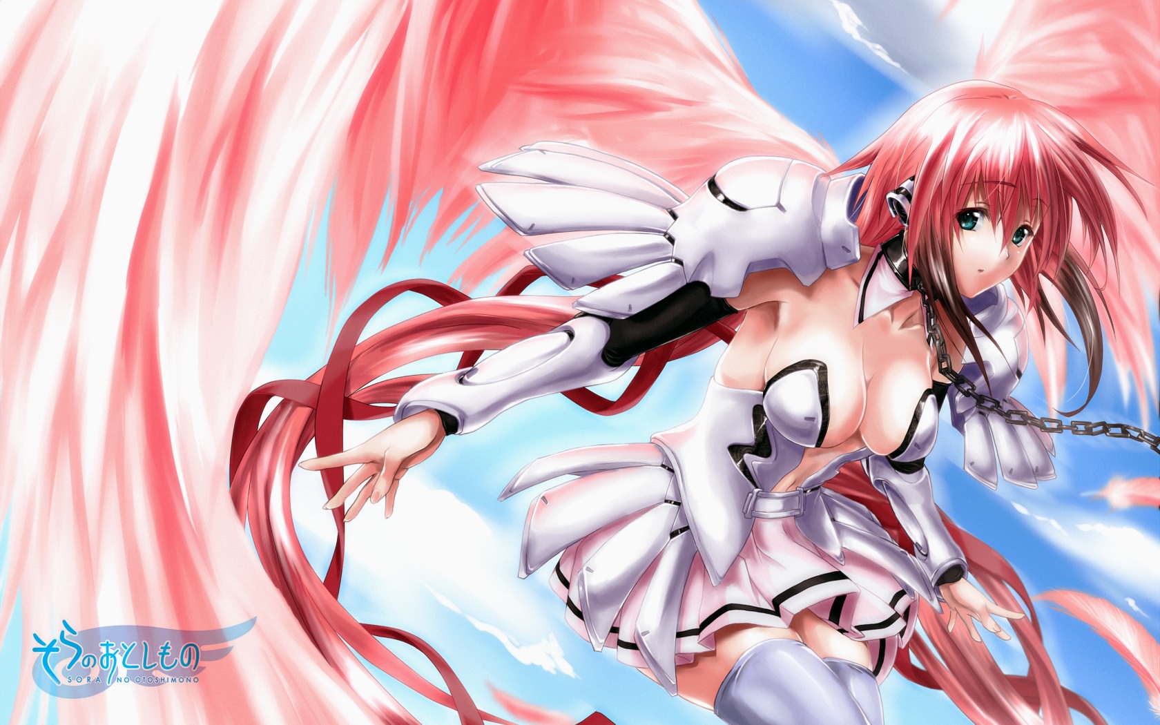 Девушка с большими розовыми ангельскими крыльями, девушка ангел с розовыми крыльями парит в облаках.