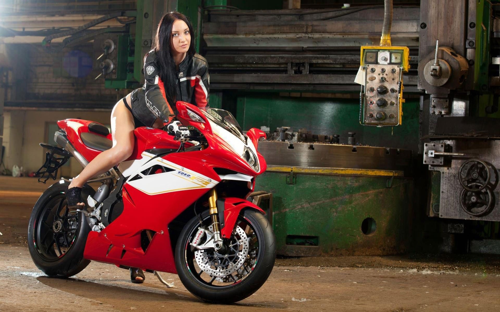 Девушка, спортивный мотоцикл, куртка, гараж, ножки, в трусиках.