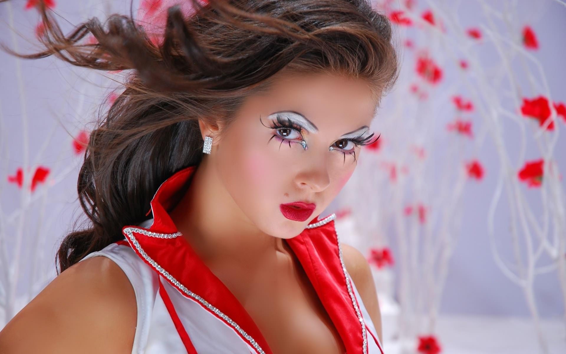 Певица Нюша, красные губы, яркие ресницы.