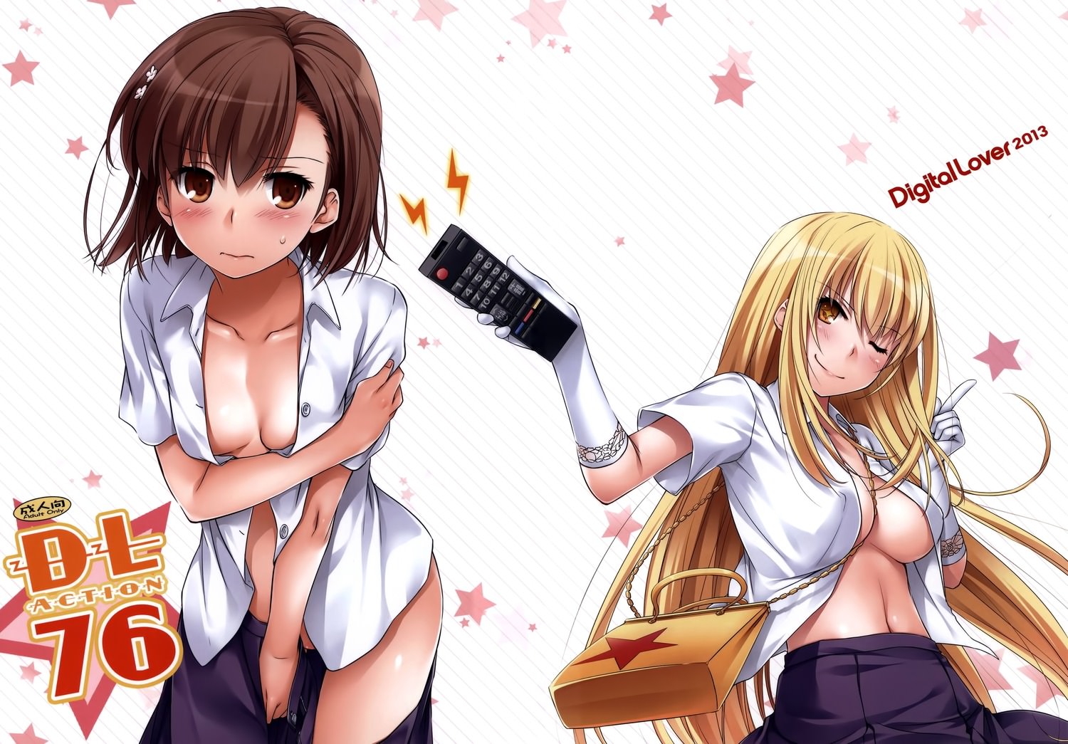 Девушки в белых рубашках без лифчиков, длинноволосая блондинка с пультом в руке и белых перчатках домогалась девушки.