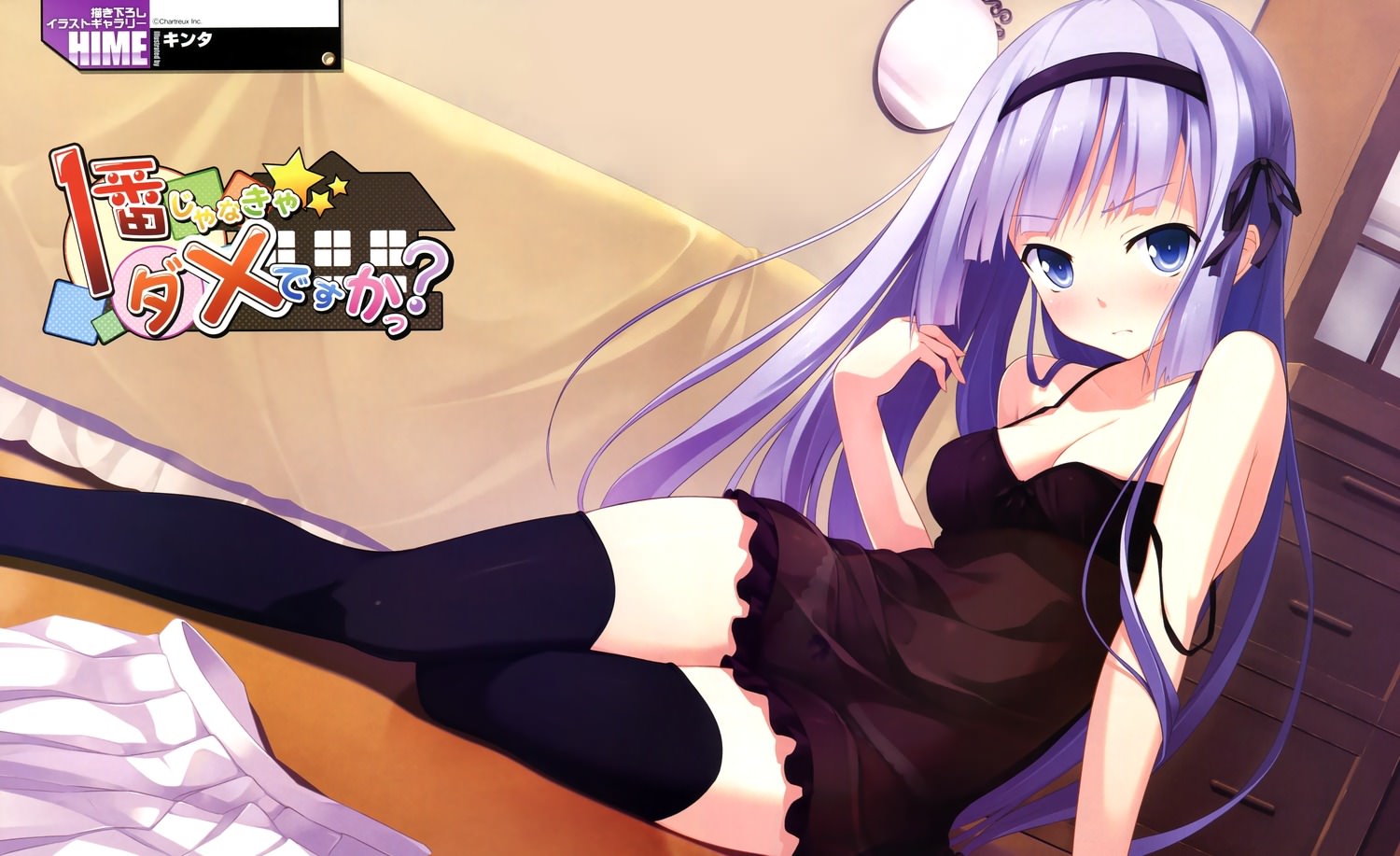 Сексуальная миниатюрная девушка в черной полупрозрачной ночнушке и чулочках, фиолетовые длинные волосы, сексуальное тело, красивые ножки в черныхчулках.