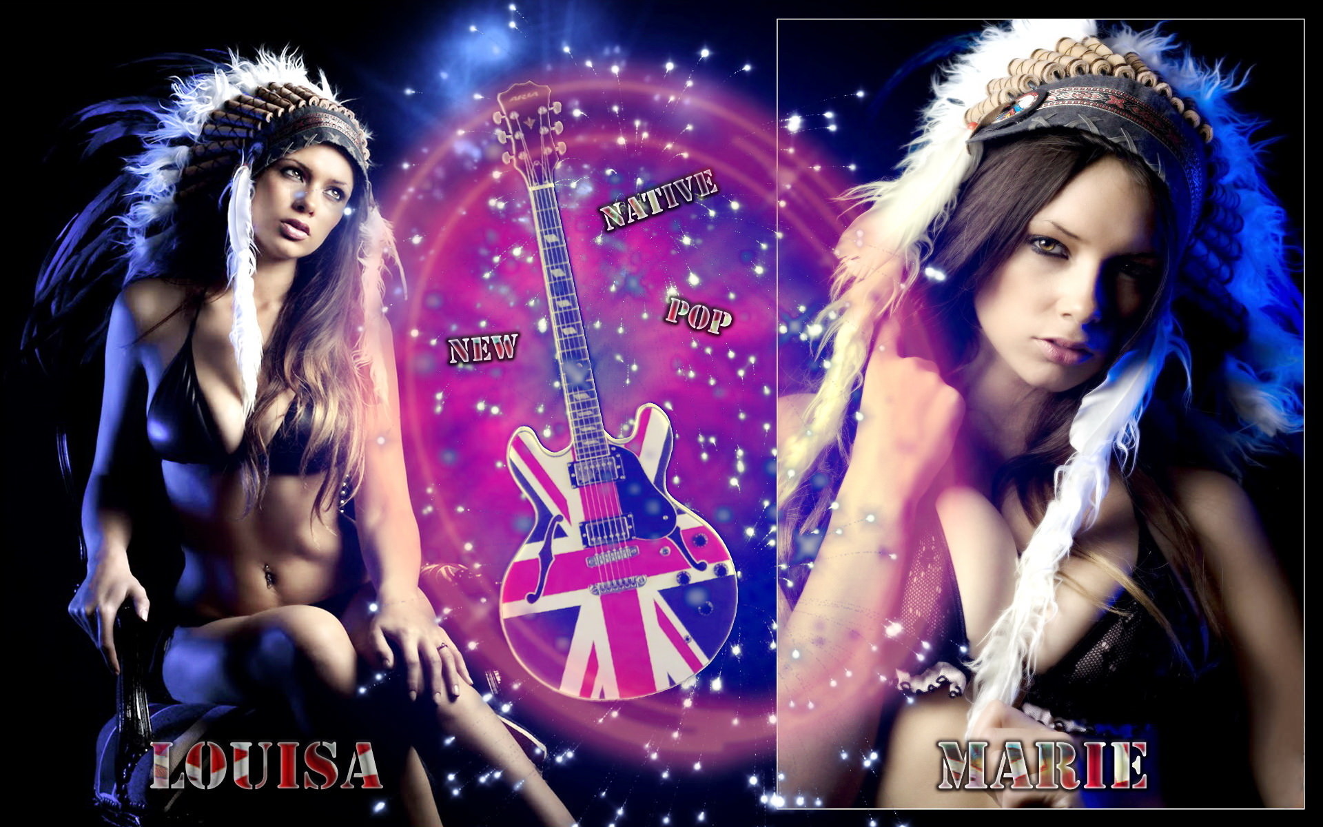 Девушка в индейском головном уборе, в лифчике, сексуальное тело.