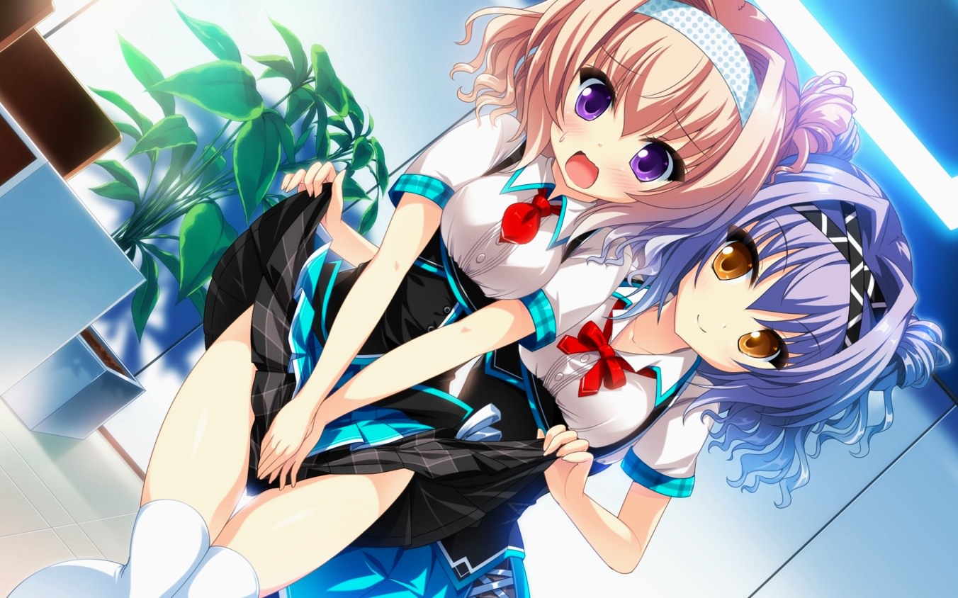 Школьница приподняла юбку своей однокласснице, не заметно подойдя сзади, а та резко прикрыла руками промежность. Красивые школьницы в черных юбочках.