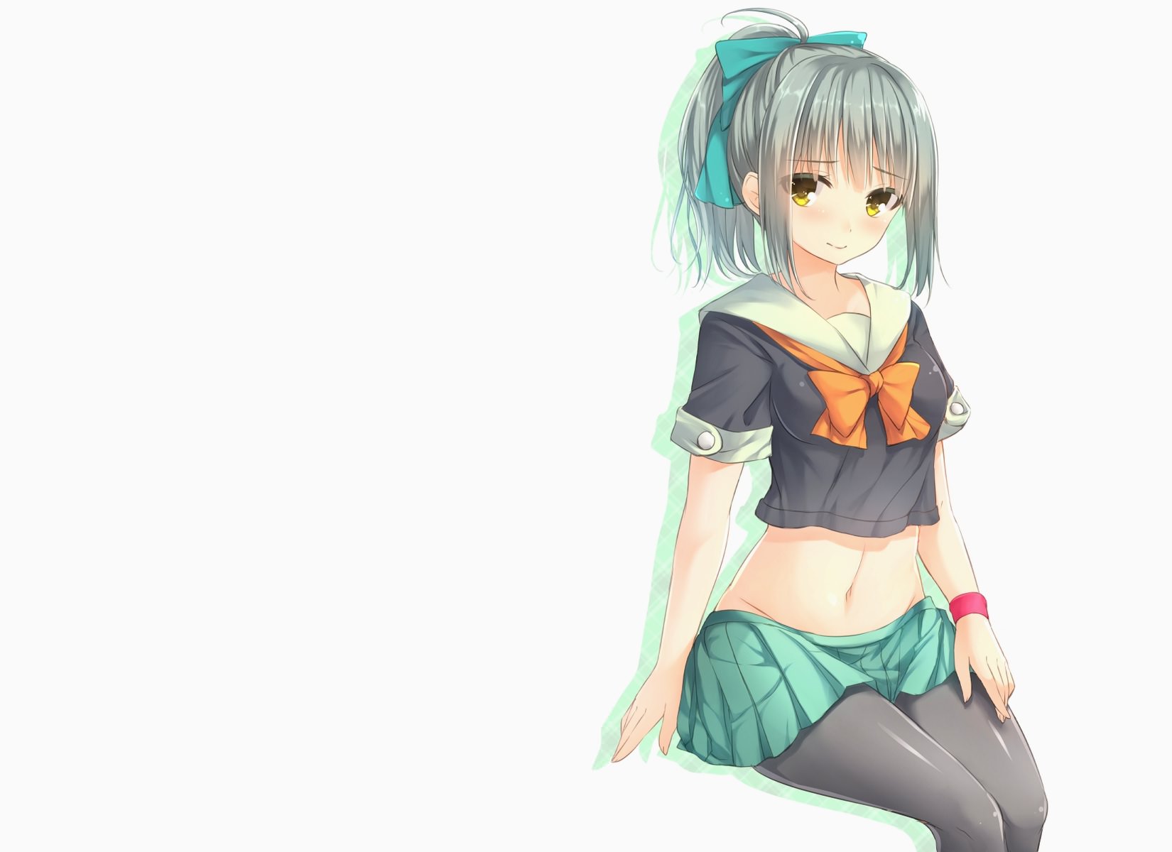 Очаровательная и сексапильная девушка в коротенькой юбочке и колготках, оголенный животик, короткая футболочка, красивое личико, красотка студентка.
