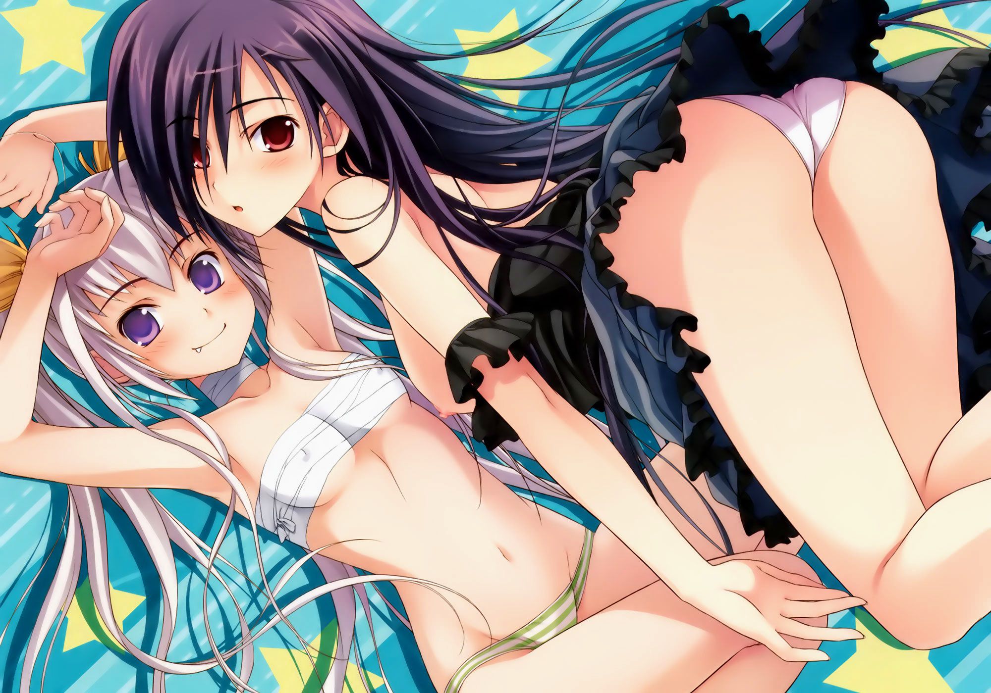 Сексуальные девушки в нижнем белье, две подружки балуются по-взрослому, темноволосая красивая девушка в черном коротком платье, с розовыми трусиками под юбкой.