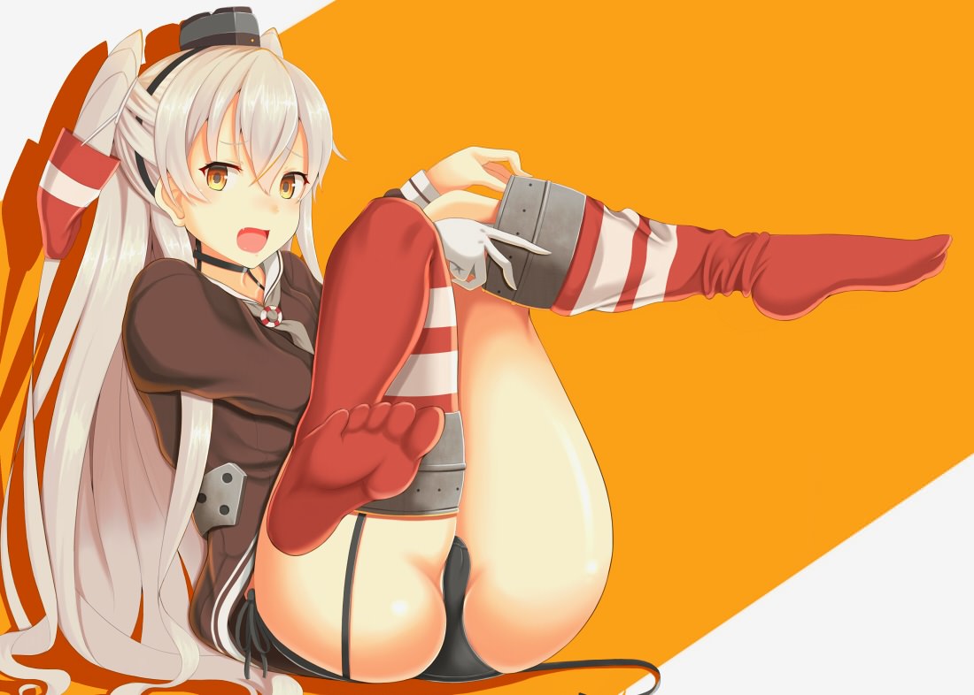 Белые длинные волосы, красные носочки, черные трусики, ecchi (1316).